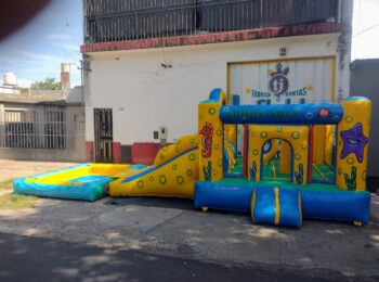 Isla flotante piratas con pileta desmontable 2×7,5mt